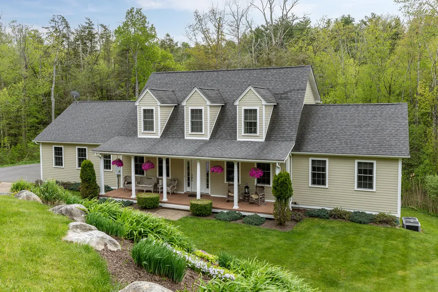 This Woodridge Lake Custom Cape with welcoming front porch offers great spaces with a large primary bedroom suite, walk in closet, and laundry all on the main floor. This home includes a separate in law/family member suite with multiple access doors. The main floor kitchen features a professional gas chefs oven and cook top. Guest bedrooms on the upper floor with a loft landing area. Lower level basement area has plenty of space for shop and recreation areas. High ceilings, lovely finish features. Professionally landscaped garden and back patio area, plus rear deck with a view to the woodlands. Low-maintenance home inside and out. Quick walk to beach, tennis, clubhouse, fitness center, pool, summer concerts, boat launch. Fishing, swimming, boating... plus multiple local hiking trails. Minutes to Mohawk Ski Area, championship golf course, the Litchfield Green, restaurants, art galleries, ...