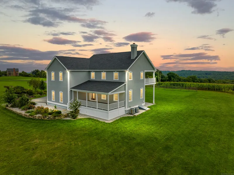 Welcome home to 95 Todd Hill Road, where country living meets the luxury lifestyle! This brand new- never occupied home is nestled up on top of the hill in the heart of Litchfield county. As you step foot through the front door you are sure to be captivated by the open floor plan, gorgeous white coffered ceiling with barn wood accents, brand new white oak hardwood floors that flow through the entire home, and an enormous floor to ceiling stone fireplace to cozy up by especially on those fall New England evenings. Through the kitchen you are welcomed by gorgeous quartz countertops on the oversized island, and the white shaker cabinets are accented by all black stainless steel appliances. Flowing into the dining area, you are welcome by a large brand new wooden table perfect for hosting all your next dinner party events! As you head up stairs into the master bedroom, you can step right out onto your private balcony overseeing almost 40 acres of cornfields and the most enchanting sunset views! The master bedroom is completed with a large walk in closet and master bath with a free standing soaking tub and a walk in shower with body sprayers and a rain head. An additional three bedrooms, a family room and two full baths complete this inside of this home. Envision yourself on these beautiful mornings sipping coffee and relaxing on your oversized front porch complete with trex decking or spending your evenings on the outside stone patio completed with a stone fire pit!