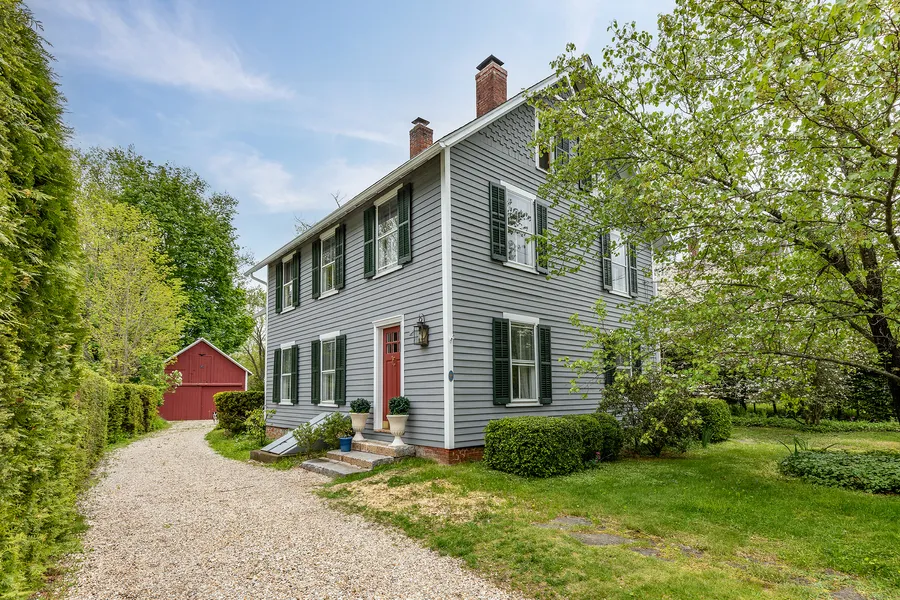 Located on one of the most charming streets in Falls Village, Adelaide stands quietly and elegantly. Blue clapboard with a delightful red door, surrounded by lilacs and budding apple trees and anchored by a red barn. Adelaide is the country home you've been waiting for. She's full of charm and also functional. Through the front door, a large mudroom with a wood burning stove warms damp winter boots. The practical layout invites you into an oversized living room with two seating areas and a wood burning fireplace. If the outdoors is calling, move outside to the spacious screened porch or to the stone patio with string lights draped above. The dining room is centrally located in the heart of the home, next to the kitchen and 1/2 bath. The kitchen offers easy access to the backyard for entertaining or unloading groceries. Upstairs are three bedrooms. The primary has an ensuite bath with a s...