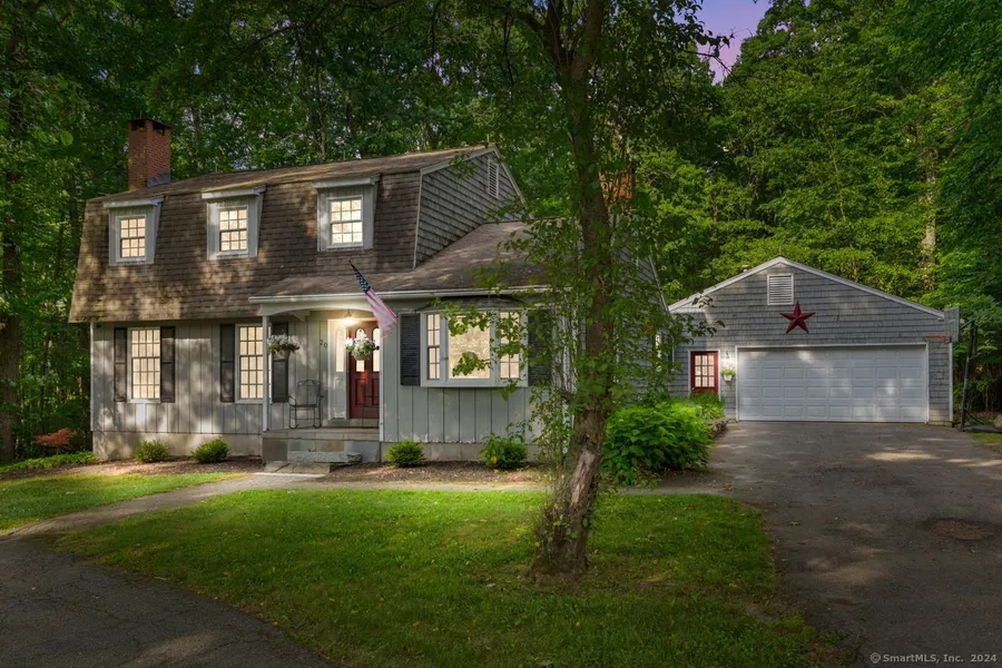 Introducing 20 Rust Road, a hidden gem awaiting its fortunate new owners! Nestled on a secluded dead-end road amidst 1.11 acres of picturesque landscape, this classic colonial exudes timeless charm and modern comfort. Step inside to be welcomed by an inviting foyer boasting intricate crown molding, a spacious coat closet, and elegant tile floors that set the tone for what lies beyond. To the left awaits a cozy living room graced with a fireplace, hardwood floors, recessed lighting, and exquisite crown and chair-rail molding. Transitioning to the dining room reveals built-ins, more hardwood flooring, and recessed lighting-the ideal setting for gatherings. The updated eat-in kitchen is equipped with ample cabinet storage complemented by newer stainless steel appliances, recessed lighting, and a breakfast bar! Just off the kitchen, step into the vast screened porch-complete with a ceiling fan and skylights-perfect for relaxing, entertaining, and taking in the serene nature views. Convenience meets luxury with a main-level half bathroom and laundry room providing easy access to the oversized two-bay garage! The cozy family room with a wood stove and bay window creates the perfect retreat on the main level. Ascend upstairs to discover hardwood floors, ceiling fans, and double closets adorning each of the three bedrooms. The primary bedroom boasts a full bathroom with a Palladian window. Two more generously sized bedrooms, a full bathroom, and a linen closet cap off the upper