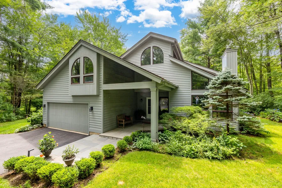Nestled in a private cul-de-sac, this casual yet luxurious meticulously and completely renovated contemporary home is not to be missed. Prepare to be wowed when you enter the grand double height foyer. An open floor plan offers seamless flow between spacious living areas which include a true cook's kitchen, dining room with built-ins and sunroom with radiant heat and wood stove, while walls of windows offer views of nature and the splendors of each season. Expansive decks and a screen porch offer outdoor living and views of perennial gardens and adjoining protected lands. Upstairs, a vaulted ceiling and clerestory windows offer views of the treetops in what is being used as a media room, open to the foyer and living room below. The primary bedroom has its own private balcony and spa-like bath complete with infrared sauna. This home was crafted for easy lake living with just a short walk to the clubhouse, lake, tennis, pickleball and pool. Come write your next chapter here.