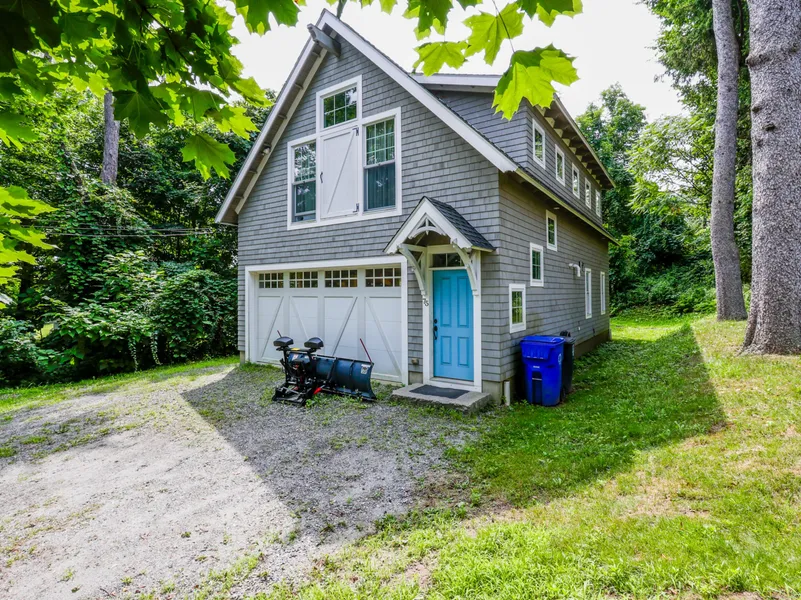 Welcome to this exceptional high ranch home, a true gem for car enthusiasts and woodworkers alike. Crafted by its original owner, a skilled custom woodworker, this residence was meticulously built starting in 2008 and completed in 2013. The standout feature of this home is its impressive garage/workshop, which offers both front & back oversized doors, a ventilation fan, its own radiant propane heating system, and 220 outlets. With enough room to accommodate up to 4 cars, it is ideal for those with a passion for automobiles or woodworking. Inside, the main level presents an open-concept design that includes a vaulted living room and a charming barn door leading to a terrace. Gleaming hardwood floors and abundant recessed lighting enhance the inviting atmosphere throughout the space. The kitchen is a chef's dream, featuring custom pine cabinets, butcher block countertops, a breakfast bar with seating, a double stainless steel undermount sink, and high-quality stainless steel appliances. The mail level also houses two comfortable bedrooms and a modern full bathroom with high-end finishes. The convenience of having laundry facilities on the same floor adds to the home's practicality. Additionally, the back balcony provides a serene view of the private, level yard, perfect for relaxing or entertaining. Situated on a quiet street next to a fantastic town park with basketball courts and a play scape, this home offers a blend of tranquility and recreational opportunities.
