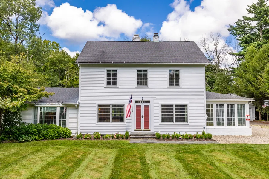 Nestled in the historic village of Litchfield, this circa 1940 colonial has been masterfully reimagined by a local architect, offering a seemless blend of classic charm and modern sophistication on a meticulously landscaped acre lot. As you step inside, you're greeted by an open floor plan that boasts a chef's kitchen equipped with top-of-the-line stainless steel appliances, including a Viking gas range. The large center island, cathedral ceiling, recessed lighting and built-in hutch all contribute to the kitchen's allure, making it a culinary artist's dream. Adjacent to the kitchen, the spacious dining area features elegant French doors that open to the private backyard, creating an ideal flow for indoor-outdoor living. The sophisticated L-shaped living room is a study in refinement with a wood-burning fireplace, custom built-in cabinets and wide board flooring that exude a sense of warmth and history. The glorious sunroom is a true retreat with radiant heat, limestone flooring and walls of windows that invite natural light to dance across the space. A practical mudroom with wide board flooring, laundry area and a half bath adds to the home's functionality. Retreat to the tranquility of the first floor primary bedroom suite, complete with engineered wood flooring, a bay window and a luxurious spa bathroom that promises relaxation and rejuvenation. The upper level is a haven for guests, showcasing four bedrooms with refinished hardwood floors, one of which includes