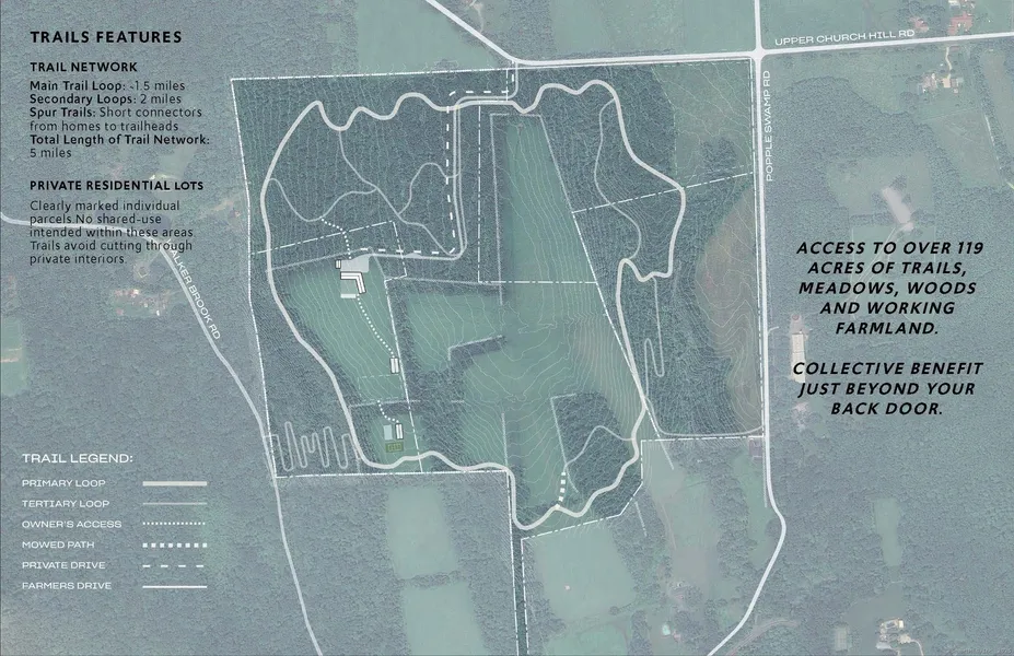 PRIVATE PASTURE HOME. Lot 4: Upper Church Hill Rd (06-08-04C). 20+/- acre (subject to lot-line revision) APPROVED BUILDING SITE. Full site engineering complete for large primary house, garage, guest house and pool. Classic Connecticut farmland, exceptionally private pasture setting. Multiple pastures creating separate fields for buildings and landscape possibilities. WESTERN VIEWS available to New Milford hill ranges and sunset. Ample sunrise to sunset daily light. HOUSE DESIGN: Custom to the Owner. TIMELINE: Design to permitting, 3 months. Construction possible in less than 12 months due to on-site architecture and speed of high-performance home construction. Other Offering amenities include access to 119 acres of trail networks, meadows, woods and farmland. See attachments and photos for further details.