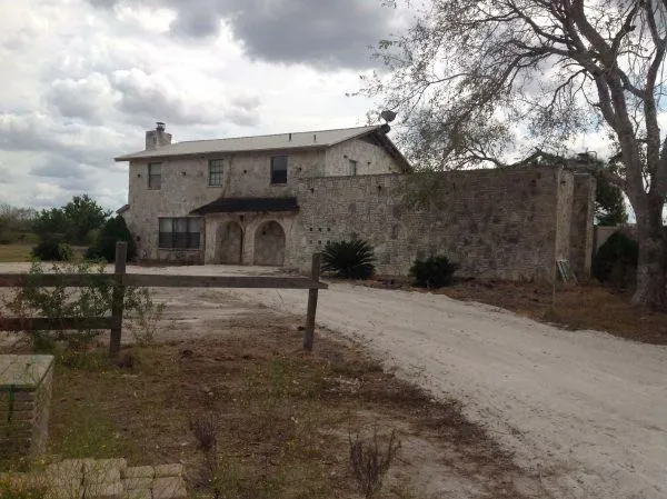Large 2 story home with a Spanish flair needs updating and TLC but could be fabulous with a little cash and elbow grease. In ground pool, workshop and large equipment barn. Pretty drive from road to the house. Very secluded. Lots of wildlife. Land boast some large trees lots of brush. Fencing in fair condition. This is a property that will take some work but could be a real showplace when work completed.