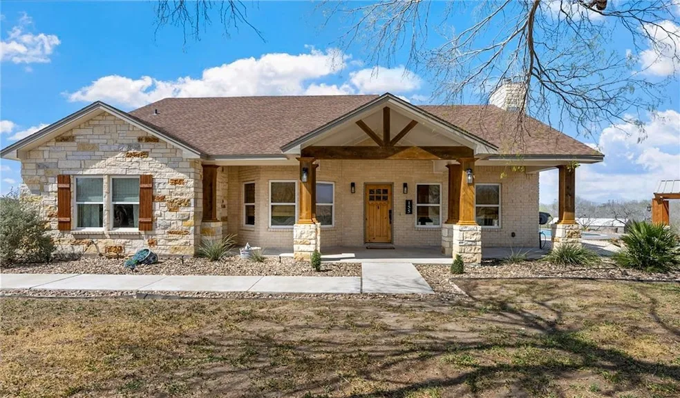 Stunning Custom Home with Pool, Cabana & Acreage. Move-In Ready! Discover the perfect blend of luxury, comfort, and peaceful country living in this custom rock and hardy board home, built in 2015 and situated on 1.5 acres in Live Oak County, near Mathis, Texas. With exceptional curb appeal and meticulously maintained landscaping, this home offers a serene retreat with a lakeview backdrop. Enjoy spacious living with 3 large bedrooms, 2 full baths, and an open-concept layout featuring high ceilings and stunning decorative ceilings with wood beams and tray accents, adding an elegant touch to the home's charm. Step outside to your covered back patio, where you can unwind while overlooking your custom-built pool and cabana perfect for entertaining or simply enjoying the beautiful South Texas days. Home Features: 2,028 SQFT | 3 Bedrooms | 2 Full Baths | 2-Car Garage Open Floor Plan-Seamless flow between the living, dining, and kitchen areas Custom Decorative Ceilings-Featuring wood beams and tray accents for added elegance Spacious Kitchen-Built-in microwave, walk-in pantry, and informal dining area Gorgeous Flooring-Beautifully stained concrete throughout Cozy Living Area-Floor-to-ceiling rock wood-burning fireplace Primary Suite Retreat-Includes: Recently renovated spa-like shower Double vanity with granite countertops His & hers walk-in closets Two Additional Large Bedrooms-With easy access to a full bath Attached 2-Car Garage-With remote and keypad entry Exterior Highlights: 1.5 AC of Scenic Land Covered Patio Ideal for relaxing and entertaining Custom Pool (16x36, 6ft deep) Built by Moreno s Pools with surrounding deck Matching Custom Cabana Includes water & electricity for added convenience 20x20 Metal Shop-Perfect for storage, hobbies, or a workshop Low-Maintenance Xeriscape Landscaping-Featuring mature mesquite trees This exceptional property combines elegant craftsmanship, modern amenities, and tranquil country living.