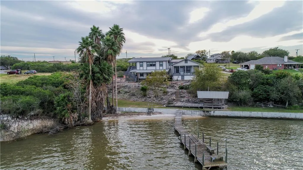 JUST REDUCED!!! Own your own piece of paradise on Lake Corpus Christi with this 3 br/2.5 ba waterfront home that stages the perfect spot for enjoying magnificent sunrises and sunsets! Launch your boat from your own concrete boat launch, dock your boat at your own pier, fish from your pier or bank, walk along your concrete sea wall, relax under the covered water side cabana, and water toy storage area, light a fire in your fire pit, BBQ in your designated area, variety of fruit trees. Granite counter tops adorn the kitchen and bathrooms. Enjoy your views of the lake from various rooms throughout the home. The master suite, with screened in porch is very private, and you awake to the beautiful views of the water. It has a huge walk in closet and bath, featuring a claw bathtub! Two bedrooms bathroom, office and living area are on second level. The workshop is a plus as is the partial bathro...
