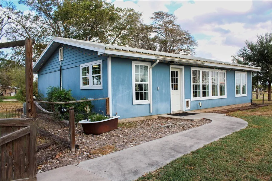 Escape the hustle and bustle of daily life with this charming two-bedroom, one-bathroom home, perfect for those in search of a vacation retreat or a serene lifestyle immersed in nature. Engage in recreational activities such as boating, jet skiing, or kayaking on Corpus Christi Lake, all while relishing the stunning sunsets of South Texas. Situated on nearly three acres, this property offers ample space and the added advantage of potential rental income through its three RV hookups, along with a convenient laundry facility and full bath for tenants. Unwind and entertain on the expansive covered and screened patio, ideal for outdoor gatherings. Additionally, a spacious metal building featuring three large bays provides excellent storage for boats, jet skis, or treasured vehicles.