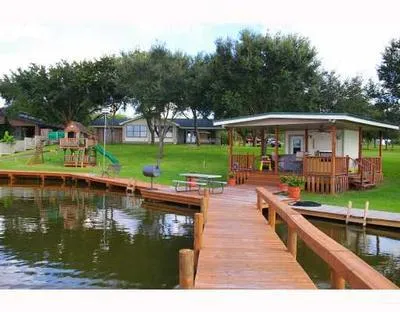 Incredible offering on Mathis Lake. Just a short 35 minutes to Corpus Christi, and minutes from the city of Mathis. This 3/2/2 boasts a complete remodel just a few years ago. Absolute perfection and ready for move in. Outstanding views from the bedrooms and sunroom which runs the back side of the house. So much storage, cabinets and built-ins galore! Petrified rock fireplace runs from the floor to the ceiling and is quite the focal point of the home. How about your own 90' lighted fishing pier along with 200' of bulkheading. For those summer parties there is even a outdoor cabana with full kitchen and air conditioning. Oversized 2 car garage along with additional covered parking. Beautiful oaks canapy the 1 acre lot with an abundance of landscaping. Recently reduced by $10K