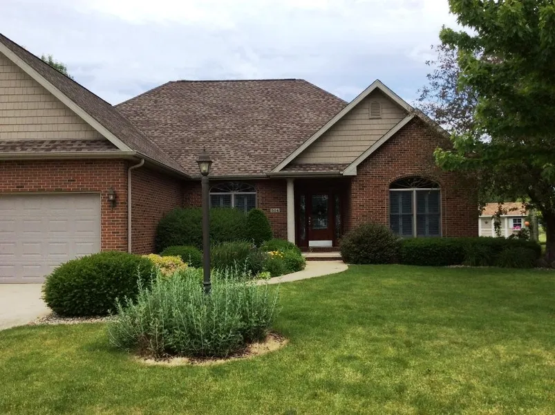 Like New 1 owner 2,230 SF Ranch home. No details left out in this Custom built 3 bedrooms, 2 bath, 2 car attached garage with brick and vinyl accent. Enormous living room with see through fireplace that opens to the spacious family room with doors leading to the brick paved patio with retractable sun-setter awning and natural gas for the grill. The formal dining room is just off the open kitchen with custom cherry cabinets and under cabinet lighting, Corian countertops, pantry with all appliances staying. Natural lighting throughout with custom window treatments. The Master Bedroom with Master bath have French doors to the brick paved patio. Enjoy the beautifully landscaped yard with a garden shed with electric outlets. No concerns of through traffic as this home is snuggled in a quiet cul-de-sac. Extra wide doors throughout to accommodate handicap accessibility. Conveniently located min...