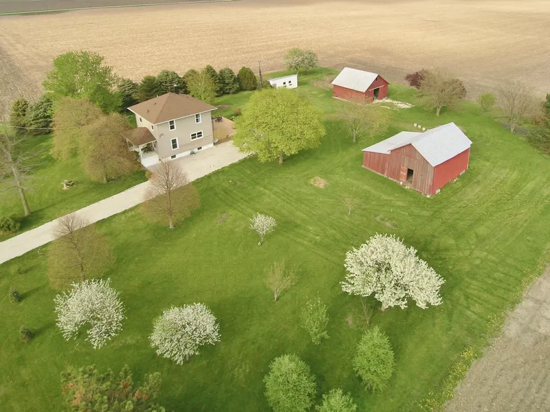 Country road, take me home! This warm and welcoming 3 bed, 1 1/2 bath farmhouse has a full basement and is nestled on 1.7 acres. Beautifully remodeled kitchen w/ hickory cabinets, quartz countertops, stainless steel appliances & porcelain tile floors. Separate dining room plus elegant and timeless wooden staircase to impress your dinner guests. Updated 1/2 bath on main level plus remodeled full bathroom upstairs which has heated floors, soaking tub, large walk-in tile shower and double bowl sinks. Inviting covered front porch and huge back deck perfect for all those BBQ parties. A quiet haven where you can really relax and enjoy the country surrounded by mature evergreens & fruit trees. 2015 updates include vinyl siding, windows, plumbing, electrical, furnace, a/c & insulation. And let's not forget about all the outbuildings. 21x31 Barn or workshop with 14x31 lean-to for vehicle parking, a 30x28 corn crib for added storage, a 22x15 storage shed plus a chicken & a duck coop. Farm animals like pigs, goats and horses are allowed. This is one of those gems that doesn't come around too often, don't miss your chance to snatch it up!