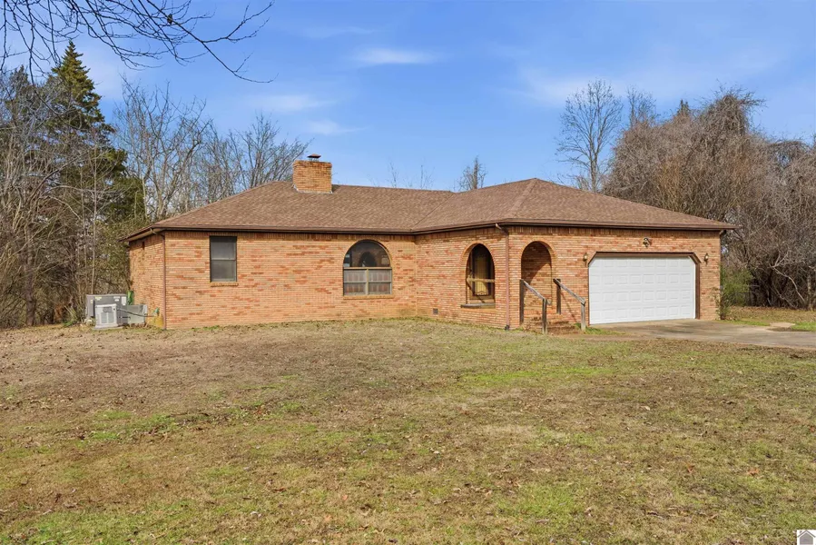 This 3-bedroom, 2-bath home offers 1,425 square feet with a split floor plan, open living, dining, and kitchen layout, ideal for everyday living and entertaining. The living area features a wood-stove fireplace for added warmth and charm along with an additional sitting area. The kitchen includes a pantry and dining. A separate laundry room adds convenience and doubles as a mudroom from the attached garage entry. The home is equipped with propane heat and a whole-house generator for efficiency and peace of mind. An attached 2-car garage provides additional storage. Outside on the approximately 22.17 acres, enjoy a detached shop with electric, a very large pond with a beach sand area, and what appears to be perimeter fencing, creating a private setting ideal for recreation, hobbies, or animals. Located just minutes from Kentucky Lake and Lake Barkley, this property offers a great blend of...