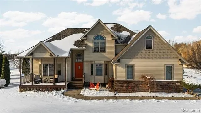 Beautiful country estate on 17+ acres, lovingly maintained by its original owner and updated throughout the years. This home welcomes you with a grand entry and soaring ceilings in the great room, featuring NEW hardwood floors and a gas fireplace with oak surround (convertible to wood burning). Enjoy an eat-in kitchen with Corian counters and sink, appliances, new garbage disposal, Anderson windows, and a door leading to the large Trex deck, perfect for outdoor cooking, enjoying wildlife and entertaining. Flexible main-level spaces include a formal dining room or sitting room with bay window and great views. The first-floor primary suite offers vaulted ceilings, WIC, and an ensuite with dual sinks, walk-in shower, and soaking tub. Main-floor laundry is available and ready to use (currently a drop zone), with real wood moldings and accordion blinds throughout. Upstairs provides 2-4 bedrooms depending on needs, including a large bonus room and an office easily converted back to a bedroom. The walkout basement features 9-ft ceilings, a full bath in use, and is ready to be finished. Outside you'll find a 60x40 barn with concrete floors, steel roof, RV door, multiple access points, and 220-amp power. Additional features include alarm system and Ring doorbell, battery backup sump pump, furnace/A/C/water heater (2018), new roof (2024), Kinetico water filtration system, yard treated 3x/year for insects, 11 acres planted with hay for easy maintenance, handicap ramp and first-floor accessibility, fiber optic internet, and underground utilities. Survey and floorplans available. So much to love about this private, peaceful property.