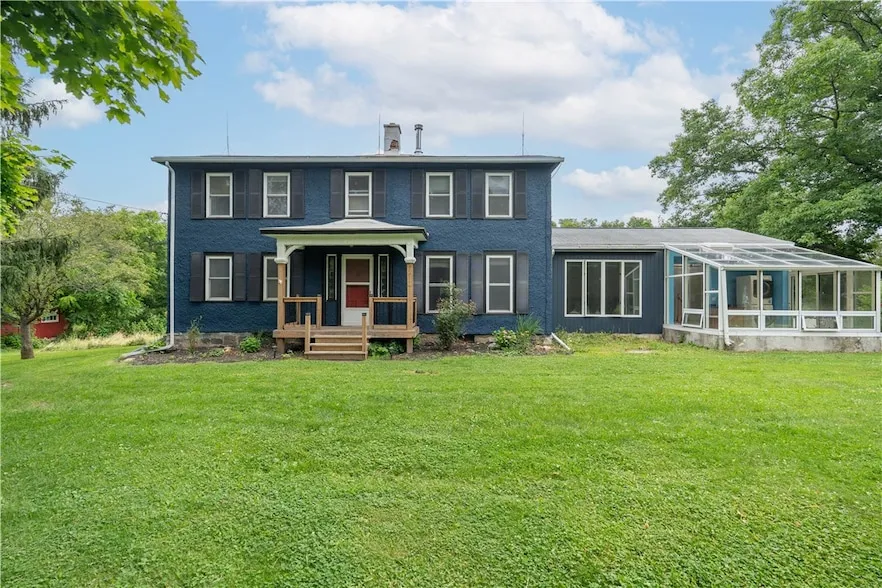 Tucked just outside the village, this property has a perfect blend of utility, privacy, and nature. It is a full setup that anyone could appreciate. You ve got land, space, and practical extras that are getting harder to find. Set on a near 3.5 acre level lot with a picturesque stream running along the edge and woods with trails that screen out the world, you ll get that tucked-away feeling while still being just minutes to schools and town. Inside you'll find hardwood floors, a first-floor full bath and laundry, and a greenhouse style room that gives this renovated farmhouse a funky edge. There's a 2.5-car garage, a barn with loft, and a separate garden shed, so whether you re into equipment, animals, or just having room to breathe, you re covered. In the highly desirable Livonia school district. Enjoy a high-functioning layout and easy access to 390, restaurants, and amenities- this is...
