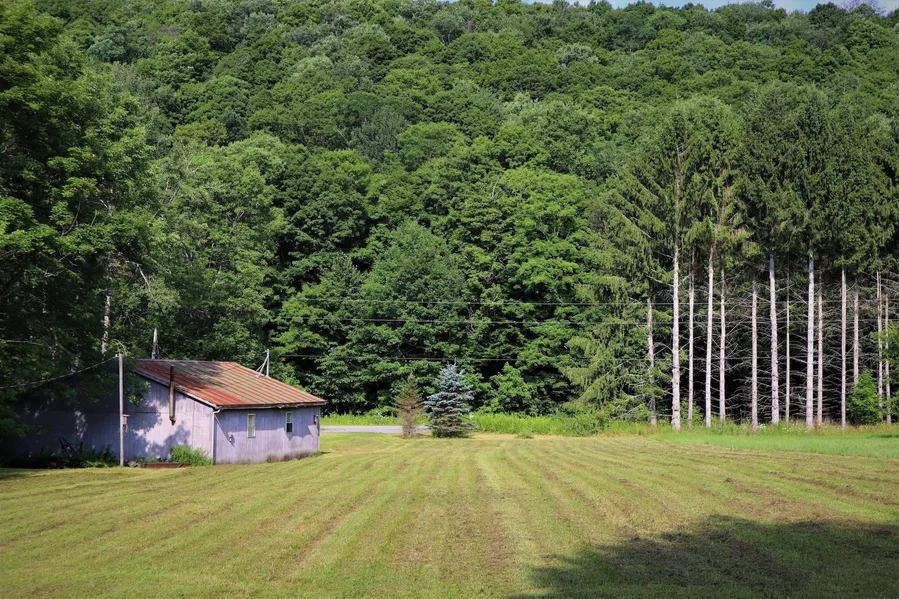 Tucked away on a quiet county road is a property that hasn’t been hunted in over 10 years. This secluded property is the perfect hunting cabin or residence for someone looking for quiet, and a big buck property with 970 +/- feet of road frontage. It backs onto over 470 acres of land trust property full of bears and bucks that have been photographed in the yard under the apple trees literally off of the back deck and from the cabin windows regularly. Backing onto a large stand of hardwoods, mature oaks, maples, and some ash on ridges are natural travel and bedding areas for deer. The timber hasn’t been harvested since the owner purchased the property in 1998, and it wasn’t logged for a long period before that. There is marketable timber here now. A clean trail network provides access to the property for hunting, and there is a small seasonal quarter-acre pond behind the cabin as well. It dries in the summer to half of its size and expands to full-size spring and fall. No doubt a stop for deer and wood ducks to visit. The home is a 1991 14’ x 70’ mobile home with a metal roof. Three bedrooms, a bathroom, open concept kitchen to the living room are greeted by a central wood stove. An LP furnace is a secondary heating source. A gas range in the kitchen is also convenient for cooking. This home is clean, warm and dry, and is ready-made for this fall to move into just in time for deer season. There are two decks on the backside, one in front of the kitchen and a covered and screened porch on the front that is currently used to keep firewood dry. The roof is metal and could be updated with paint but is in good condition to last many more years. A front 30 x 40 workshop is wired for power and can hold large equipment and is 1/3 cement floor, 2/3 dirt floor. If you are looking for a well-priced starter home or hunting cabin with two acres of lawn and apple trees in the shadows of towering pines and hardwoods, this is a spot to check out.