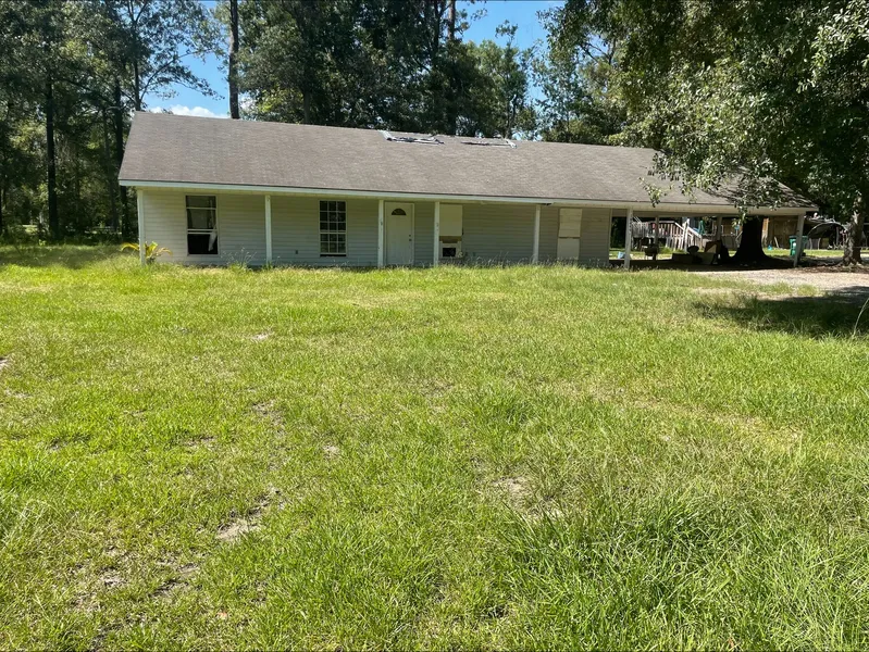 Home sits on a large lot in the country. Large Master bedroom with en suite bathroom includes double vanities and jetted soaking tub. Spacious living room. Detached storage shed. Flood zone X. A section of the home was removed due to storm damage.