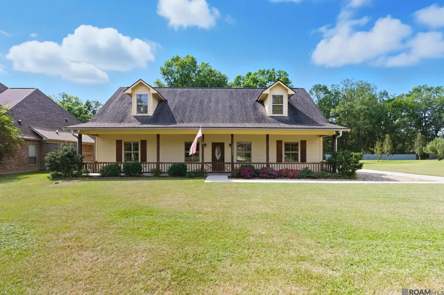 This 4-bedroom, 3.5-bath home in FLOOD ZONE X with WHOLE HOUSE GENERATOR also features a BONUS ROOM above the detached garage—perfect for a game room, office, or 5th bedroom. The possibilities are endless especially with the half bath below the bonus room. Tucked away on half an acre, this beautifully maintained custom home offers the warm, inviting feel of a log cabin retreat—right in the heart of Denham Springs. Enjoy that serene country atmosphere while being just minutes from I-12, top-rated schools, Juban Crossing, and more! Step onto the massive front porch and inside to the inside living space where rich wood accents flow throughout, giving you the perfect blend of rustic charm and modern convenience. The open family room connects seamlessly to the kitchen and breakfast area, complete with stainless steel appliances, abundant cabinetry, and a window overlooking the private backyar...