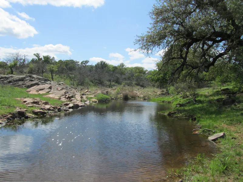 Located in northern Llano county, this 1,100 acre ranch features some of the most stunning hilltop views in the Hill County. One of the best building sites has both water and electrical service nearby. The terrain ranges from gently sloping to steep hill sides. Wolf Creek runs through the heart of the the ranch, from north to south, for a total of approxitely 2.5 miles. The Wolf Creek watershed covers thousands of acres and the creek has numerous spots where nice large lakes could be constructed. This ranch has very consistent tree cover consisting of live oak trees, post oak trees, cedar elm trees, and mesquite trees. The cedar trees have been cut. The ranch has good productive soils with a healthy cover of native grass. There are ample places to plant improved grasses or wildlife food plots. The ranch is cross-fenced into two main pastures and there are two water wells. The...