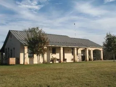 Llano Co. SW: 10+- ac. ranch land with custom built 2001,3/2 rock home, vaulted ceilings, recessed lighting, granite countertops, large office, customcabinets,many built-ins, tile, private area, about 4 miles from city limits, fenced, improved grass, field, borders Flag Creek, beautiful home & location.
