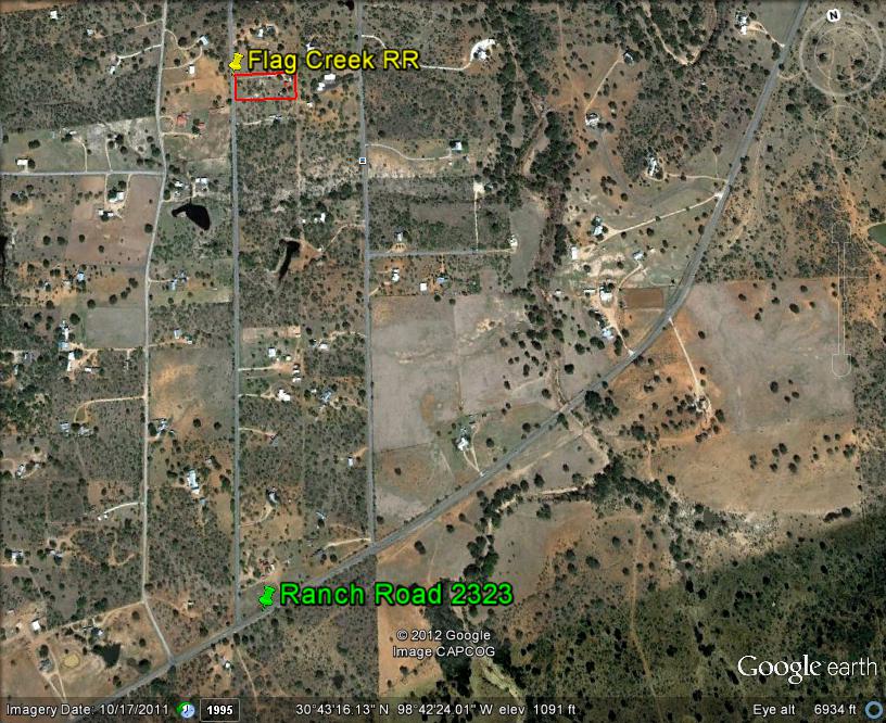 Research Parcel InformationWest on RR 2323 (Prairie Mtn Rd), right on Flag Creek Ranch Rd (the second CR 115), property on your right.