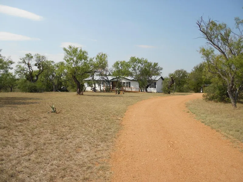 Very clean and well maintained 4 bedroom, or 3 bedroom with office, new when placed on this property in 1998. Large living room with fireplace. Nice kitchen with good cabinets and new counter tops. New floor in kitchen, bathrooms and utility room. Large master bedroom and bath with two sinks, tub and walk in shower. Central heat and air, ceiling fans. Covered insulated deck approximately 10x36 with ceiling fans, shaded by large live oak trees. Good view of deer feeder & bird feeders. Closed area under deck for winter storage of plants. Front deck with handicapped ramp. Vinyl siding with rock and hardy-plank underpinning. Large front yard. Rear of tract borders Johnson Creek, seasonal water flow, and in 100 year floodplain. House and front of acreage is above flood plain. To the best of our knowledge, creek has never overflowed creek channel, which is very wide. Large live oak, post oak, elm and mesquite trees with some brush left for wildlife. Abundant deer, turkey and other wildlife, much like a private preserve. Great place for bird watching. Metal 10x12 storage building, 2 car carport. Good well rated at 8 GPM. This is a very nice affordable home offering country privacy, wildlife observation and bird watching, and is only 5 miles from Llano, Texas, the "Deer Capital of Texas". $159,000 MLS 124942