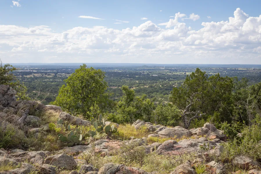 Description: The Hilltop Ranch has been operated primarily as a cattle ranch for the last several years. The Northern portion is primarily sandy-type soils, and the Southern portion is rockier in nature rising up to the large hill covered with granite outcrops with stunning views of Llano (including the Llano County Courthouse) at the top. Elevation changes are approximately 300 with the highest elevation being 1441 and the lowest near the wet weather creek, 1100.