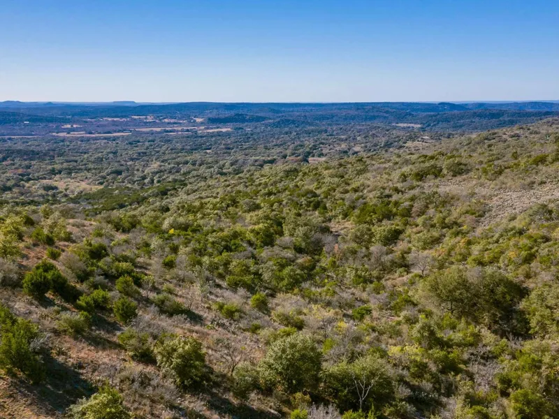 -Nearly 300 ft of elevation change at the back (west) making a dramatic unobstructed view of Enchanted Rock, Watch Mtn, and House Mtn. This 300 ft escarpment leads down to another seasonal creek and spring.