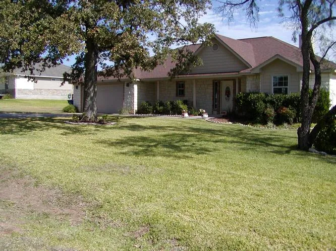 Over 2000 square feet of well maintained well built home in Kingsland. Located across the street from the Packsaddle golf course. Lots of nice amenities in this home, beamed ceiling in the living room, granite tiled countertops, stained flooring in the dining and kitchen laundry room off the master bedroom. Sprinkler system front and back also property can be accessed from the road in front or road in the rear. The back yard has a workshop storage building and a seating area to enjoy