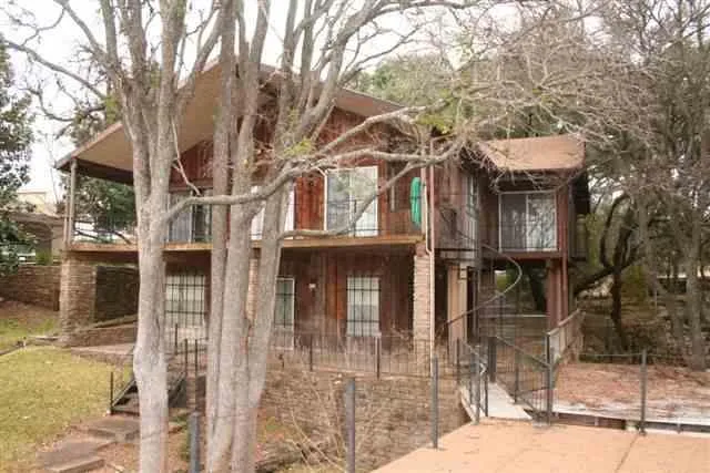 Great sunrises over Lake LBJ will greet you in this classic cedar bungalow on 74' of open water. The house is set amid many large trees and the property is adorned with a variety of landscaping plants and annual blooming varieties. From the upper floor, reached by gentle stone steps from the paved drive, you have a grand open view of the lake in the living area with beamed and vaulted ceilingThe upper and lower floors are stand alone living units with an interior spiral staircase joining them in the lower foyer. Each floor has its own central heat and air unit, locking exterior doors, kitchen and bath. There is a bonus bath outside on the lower level for quick use from the lake. Your boat will be pulled up off the lake by a winch system into the boathouse, while you can fish off the retaining wall and pier. The RV parking slab near the street is a grandfathered feature not often found in...