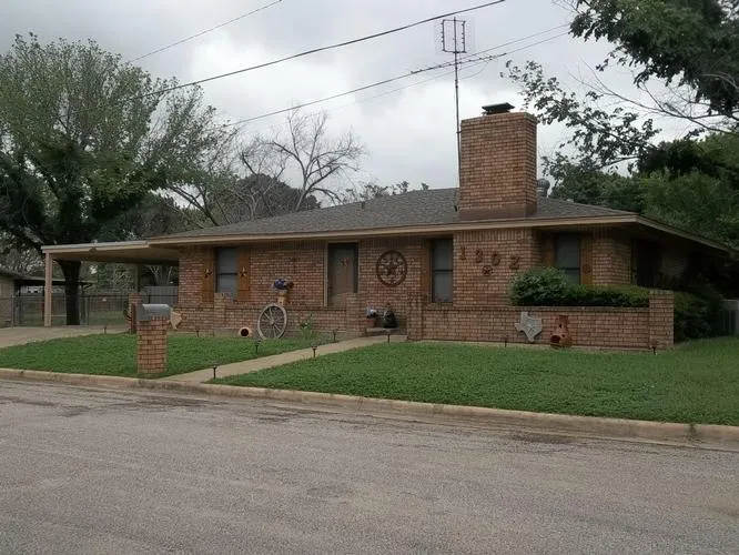 Great area of Llano Texas, lovely 3/2 brick home, brick fireplace, custom-kitchen w/granite counter tops, custom cabinets, island, and stainless steel appliances.Large utility and pantry room,3 walk-in-closets, Brand new central h/a just installed, court yard off master bedroom, plus new Mr. & Mrs. closets, new tub w/tile shower, sink & fixture all nicely done, large back yard w/privacy fence, ample room to park your boat, RV, and build yourself a pool. Concrete patio, storage room, separate fence for pets, a good family home .