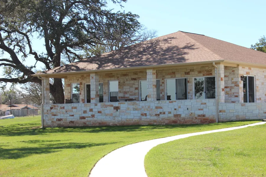 This is a top notch 2/2 lake home. White rock custom home built on a large waterfront lot. The view of the Dam is fabulous! Granite countertops and open floor plan. Walk in master shower with large rooms. There is a two car garage and wonderful outdoor living spaces with a covered back porch and an open patio, both stone. This is a beauty with views, views, views!