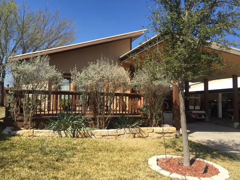 Cute, Cute, Cute! Large two-bedroom, two-bath home with deeded boat slip and electric lift on the open waters of Lake LBJ! Open floor plan with light and bright living, kitchen and dining area for family gatherings. French doors in front open to large wood deck. Updated kitchen with stainless appliances, breakfast bar and there's still room for large dining table. Utility room in the house and ample storage for your lake toys. Back and side yard is completely fenced and offers private outdoor area and more storage space. HOA dues cover sprinkler system from lake, garbage pickup, maintenance of fence around subdivision, insurance of boat dock area, yard maintenance of common area and the quarterly dues to LCRA for lake water for sprinklers. Great lock and leave weekend home. Waterfront amenities without the waterfront taxes!