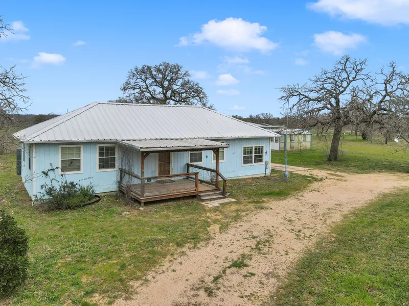 Welcome to your dream country retreat! Nestled on four acres, this charming ranch house offers the perfect blend of comfort and tranquility. Step inside to discover 2 bedrooms and 1 bath, wood floors, granite kitchen countertops, abundant windows and natural light. The house boasts a sturdy metal roof, ensuring durability and rustic charm. Relax and unwind on the covered porch, whether you're enjoying your morning coffee as the sun rises or stargazing under the dark country skies at night. Outside, you'll find yourself surrounded by the beauty of nature, with the entire acreage fenced and shaded by majestic post oaks. Embrace your green thumb in the greenhouse, or tinker away in the workshop, both providing ample space for hobbies and projects. Experience the serenity of rural living while still enjoying modern comforts. Don't miss out on this opportunity to own your slice of hill countr...
