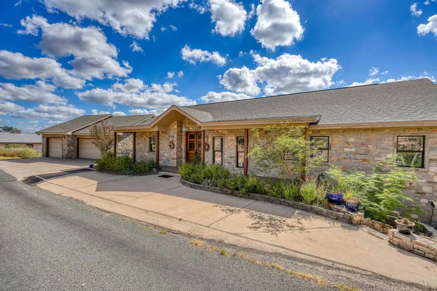 This stunning hill country estate is nestled within the gated community of Inks Lake Village, offering breathtaking views of Inks Lake & Inks Lake State Park. Nearby hiking, wineries, boating & golfing makes this property the ideal short term rental, primary home or weekend getaway. This meticulously maintained home was custom built by the current owners in 2002 with attention to detail and functionality. The fully stoned exterior, new class 4 shingles (installed 9/2024), lush landscaping, & an over-sized 3 car garage will be the first impression, however the breathtaking view of Inks Lake from the chef's kitchen and open living space is the true show stopper! This 3/3 home features mesquite hardwood & concrete flooring, and large windows with motorized shades, allowing for natural light & panoramic lake vistas. The two patios that spread the length of the home is the perfect setting for a morning coffee wile the sun rises over the lake. The main level is functional with a kitchen featuring high end appliances, open living, and dining area, primary bedroom with dual closets and en-suite bathroom, guest bedroom and guest bathroom. Head downstairs to the 3rd bedroom and bathroom, 2 flex spaces with limitless possibilities, and a large workshop. Across the street is the neighborhood boat ramp and community park to make a day on the lake a breeze. This beautiful home and spectacular view must be seen in person to fully be appreciated!