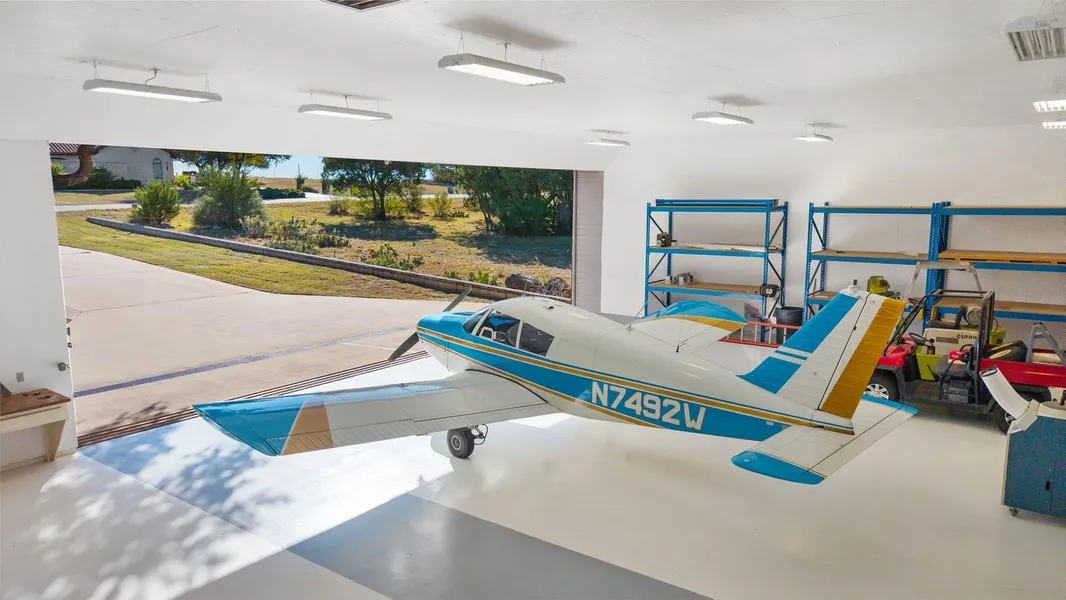 Live the ultimate aviation lifestyle in this rare hangar home with direct taxiway access to Horseshoe Bay Resort's private 6,000-ft lighted Jet Center runway // Set on a spacious 0.68-acre lot, the stunning 2-story main home offers 2,714 sq ft with 3 beds, 3 baths, stylishly updated kitchen with stainless appliances, open living/dining areas, and a generous primary suite. Relax on the large patio enjoying breathtaking Lake LBJ and Texas Hill Country views. A detached 544 sq ft guest casita provides 1 bed, 1 bath, kitchenette, and flex/office space - ideal for guests, your private pilot or work-from-home. The star is the 2,700+ sq ft hangar featuring a 50-ft manual bypass door, oversized RV door, epoxy floors, and room for aircraft, boats, RVs, full bathroom, plus storage. Bonus helipad area included! Taxi home, park your plane, and enjoy Horseshoe Bay's Resort World Class Amenities: championship golf, Lake LBJ access, pickleball, tennis, dining & spa (membership required to use resort amenities.) Perfect for pilots, aviation enthusiasts, or second-home owners seeking adventure and serenity. Horseshoe Bay Texas is just 45 minutes northwest of Austin and 90 minutes north of San Antonio in the heart of the beautiful Texas Hill Country.