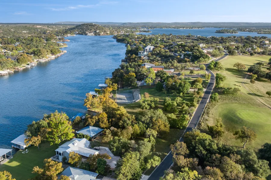 Set along the southern shores of Lake LBJ in coveted Blue Lake Estates, this 1.59-acre waterfront property offers a rare chance to create a Hill Country lakefront estate. With approximately 0.87 acres of buildable land plus additional underwater property, the site provides an ideal canvas for a custom residence, boathouse, and dock. More than 75 feet of open-water frontage captures wide lake views, sunsets, and a serene setting framed by mature cypress at the shoreline and stately oaks near the front. The land is cleared and ready for construction. Architectural plans for two luxury home concepts are available, each emphasizing indoor-outdoor living, strong waterfront orientation, and the ability to include a three-car garage and private boathouse with dual Jet Ski ramp. Bring your builder and craft a legacy home tailored to your vision. Blue Lake Estates is one of Lake LBJ’s most desirable enclaves, known for manicured surroundings and well-kept properties. Amenities include five waterfront parks, a private boat ramp, PWC launch, tennis courts, basketball courts, volleyball area, and a top-rated nine-hole golf course near the entrance. Golf-cart-friendly streets, abundant wildlife, and a relaxed lake lifestyle define the community while remaining close to Horseshoe Bay Resort. Austin is about an hour away and San Antonio just over ninety minutes. This tract blends privacy, usability, and premium open-water frontage in a setting rarely available.