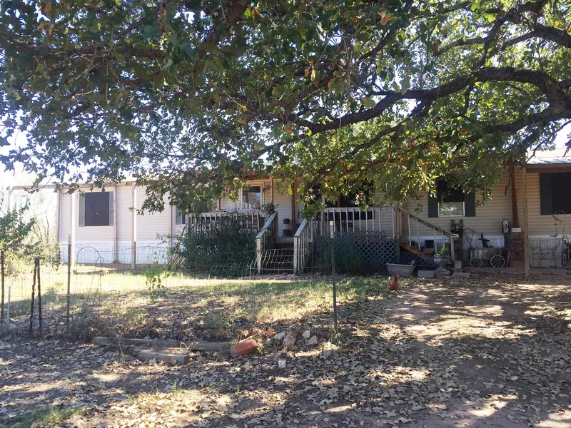 Perfect place for horses and people too! More than five acres with beautiful oak trees, and a 4/2 manufactured home in Kingsland. Open floorplan, fireplace, huge master suite with spa tub and separate shower, decks in front and back, large laundry room, hot tub, detached garage or storage for the humans and six stalls, six pens, a corral, hay ring and room to roam for the animals. Second storage building near animal stalls. Home has city water and a well thats used to water grounds.