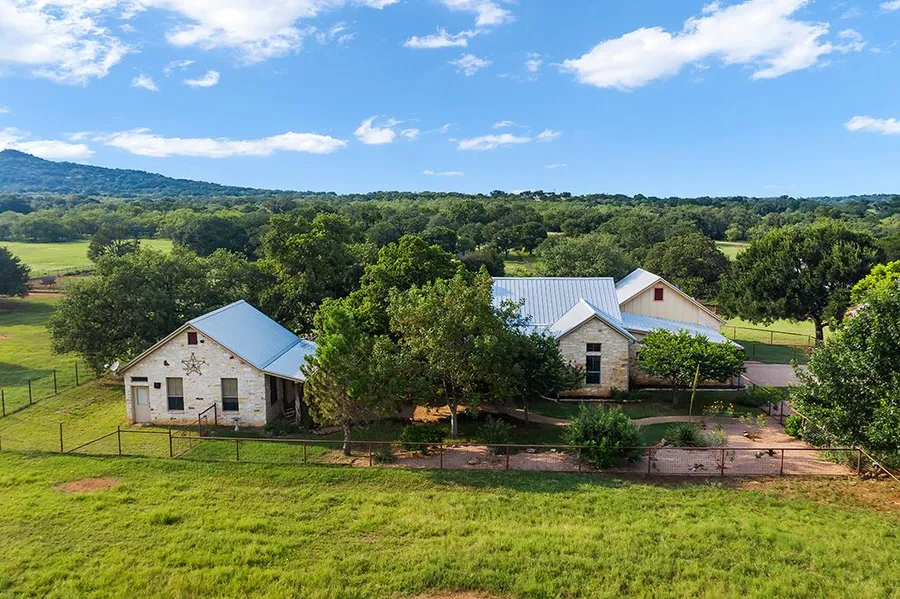 Hill Country Horseman's Paradise -Stunning 32.9 secluded acres with spectacular views located just minutes from town as well as the Llano River and the Highland Lakes. This custom Basse Brothers Block, Fredericksburg style home boasts 3 bedroom 2 bath plus 1 bedroom 1 bath matching guesthouse. All sit tucked amidst the beautiful surrounding hills. Enjoy views from both porches of the 5 large coastal pastures with horse shelters. Horse amenities include a 7 stall barn with runs, auto waters, wash rack with stock, tack room, 140' Octagon arena, 140'x180' paneled arena and cow pens. Sandy loam and granite soil make this a truly one of a kind property. This property would also make an Executive Retreat or Vineyard.