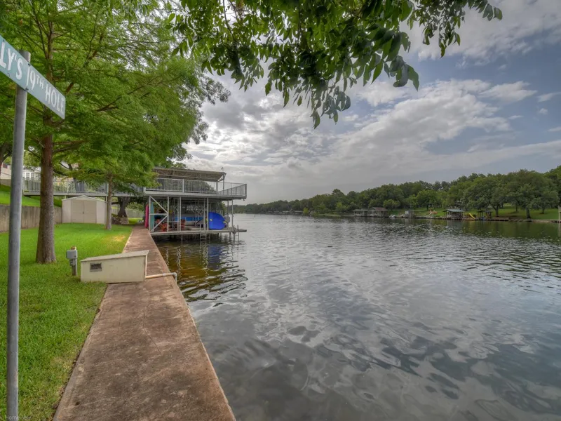 Gorgeous waterfront lot and manufactured home on the cool, deep waters of the Colorado Arm of Lake LBJ. The 125 feet of waterfront and exceptional boat house with upper deck is worth the asking price alone. The 2004 manufactured home is in like-new condition and comes fully furnished. The detached site-built garage has plenty of space to store your boat and water toys. Off the home is a covered deck, where you can look down on your beautiful, lush lawn and mature trees. Enjoy a drink with family and friends on the huge southeast-facing boathouse deck. The three-bedroom, two-bath home has a large, well-appointed kitchen, and spacious master bedroom and bathroom. A lake pump and good well supply the sprinkler system and home. Other items that could be included at this asking price are a 2015 22-foot G3 tritoon with 150hp Yamaha, two wave runners, a 2-year-old riding lawn mower, two kayak...