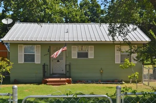 Super cute, neat and clean, well maintained 2/1 approximately 712 sf on about .31 acres. 75'WF per the plat. Chain link fenced front yard. Great deck and sitting area on lake side. Boat dock with electric lift. Three pecan trees and a peach tree. Some furnishings can convey.