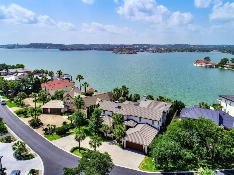 Welcome to Lighthouse Drive; one of the finest waterfront locations on Lake LBJ. This exquisite home was masterfully constructed by Hudson Homes with exceptional finishes hand selected by Sue Burgess. The expansive floor plan was designed with entertaining in mind as the entire main level flows seamlessly together. Luxury amenities include rich hardwood floors, travertine accented walls, wood ceilings, elevator and Control4 home automation. The pampered chefs dream kitchen is equipped with Subzero refrigerator, Wolf 6-burner gas cook top, double ovens, warming drawer, Miele coffee station, sleek granite and a dine-in island that seats eight. The sequestered master suite offers a sitting area, fireplace and access to a private covered patio overlooking the pool and Lake LBJ. The spa like master bath features whirlpool tub and his & her private areas that connect through a unique walk thru shower. Upstairs you will find four luxurious guest suites adorned with wood accent walls, lavish en suite baths and walk-in closets. Two of the guest suites feature private covered decks overlooking the lake and one has built-in bunk beds. There is also an amazing entertaining venue to watch the game, enjoy a cocktail from the bar or lounge on the private balcony. The private outdoor living is second to none with multiple lounge areas, fireplace, built-in TVs, pool, hot tub, summer kitchen, limestone floors, tropical landscaping, 2 boat lifts, 2 Jet-Ski lifts and gorgeous views of Lake LBJ. Sold fully furnished.