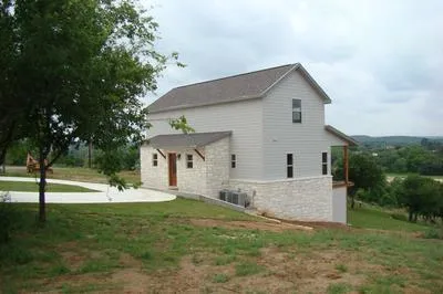 New home with spectacular views of the Hill Country, Sandy Creek and Packsaddle Mountain. Home has 3BD/2.5BTH with master bedroom and bath on main level with kitchen, half bath, family living area and a fabulous covered deck. Two bedrooms, one bath upstairs with spacious walk-in closets. There is storage below the house, outdoor shower and a concrete circular drive. Property includes sandy beachfront for splashing, kayaking, hiking, etc. Panoramic views throughout with lovely southern breezes. OVER AN ACRE WITH 93 FEET OF WATERFRONT FOOTAGE. Five waterfront POA parks available for Lake LBJ access.