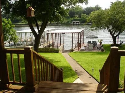 Nice Open water for under $500k! Well maintained brick home on beautiful Colorado Arm of Lake LBJ. Enclosed sunroom makes an excellent 3rd bedroom. 400sq ft covered deck on waterside with Eastern exposure. Deck on water with recent steel boat dock. Large living looking out to deck and water. Great flow and large rooms allow for many guests