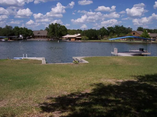 Marvelous home site lot with 71 feet of waterfront in Sunrise Beach. Lot located in a large cove and has many mature trees. Features include a fishing pier, retaining wall and boat slip