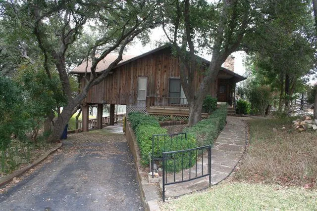 Great sunrises over Lake LBJ will greet you in this classic cedar bungalow on 74' of open water. The house is set amid many large trees and the property is adorned with a variety of landscaping plants and annual blooming varieties. From the upper floor, reached by gentle stone steps from the paved drive, you have a grand open view of the lake in the living area with beamed and vaulted ceilingThe upper and lower floors are stand alone living units with an interior spiral staircase joining them in the lower foyer. Each floor has its own central heat and air unit, locking exterior doors, kitchen and bath. There is a bonus bath outside on the lower level for quick use from the lake. Your boat will be pulled up off the lake by a winch system into the boathouse, while you can fish off the retaining wall and pier. The RV parking slab near the street is a grandfathered feature not often found in...