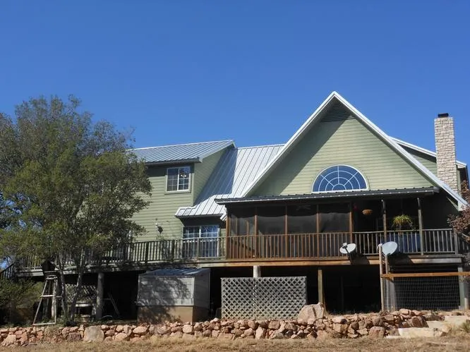 The 2-story contemporary and hill country style home has lots of room for you, your family and friends! Walk up to the covered front porch, which is situated by a large smooth granite outcrop, then enter the foyer and into a spacious living area complete with a rock fireplace, vaulted ceiling, lots of windows and French doors that lead out onto a screened in porch.perfect place to enjoy your morning coffee or evening cocktail. It also offers a, formal dining room, breakfast area, large kitchen with lots of cabinets with granite countertops ...