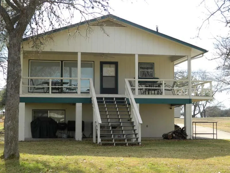Water's Edge lakehouse on large cove on Lake LBJ. There is 60' of waterfront with 2 boatslips(one for the boat and one for 2 jet skis), waterfront patio, large covered porch looking out at the water. A great place to enjoy all the summers water and outdoor activities. There is a lake pump and sprinkler system to maintain a beautiful yard. Great weekender or permanent home. Easy access to San Antonio and Austin. MUST SEE! Priced below county appraisal.