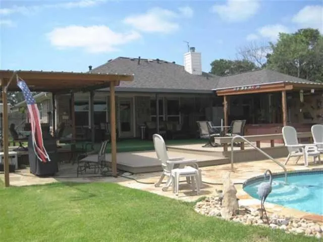 and grilling area. Flagstone around the pool and composite decking allow low maintenance. Two storage buildings in front and one by pool, using one for a workshop if desired. Pool built in 2007 with propane heater. Fireplace currently with propane logs