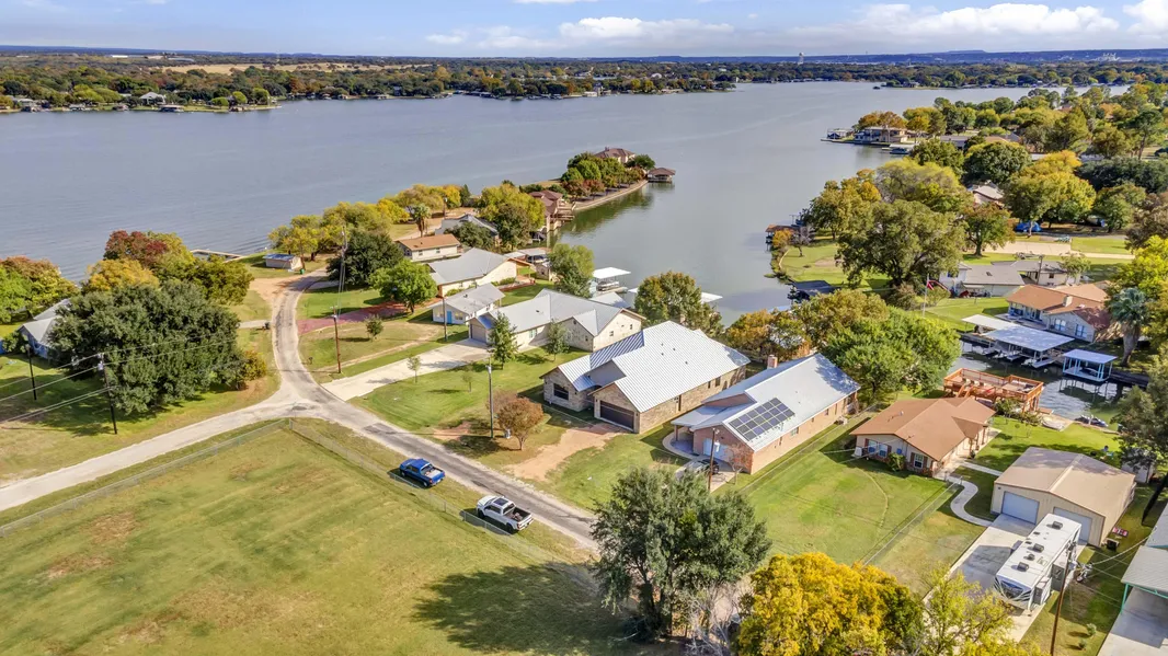 One of a kind, completely remodeled 3/2 home, at the mouth of a quaint channel on gorgeous Lake LBJ! This home features all new cabinetry, floors, fixtures & appliances. Open concept with new picture windows & sliding door in den, overlooking the beautiful lake! All new electrical upgrades to the floating double decker dock w/remote lighting, boat lift & 2 jet ski lifts & to the huge 1,050 sq ft metal building on the extra lot next door. Home is half a block from the community park with public ramp, picnic tables & BBQ pits, for your entertainment! This beautiful home won't last long!