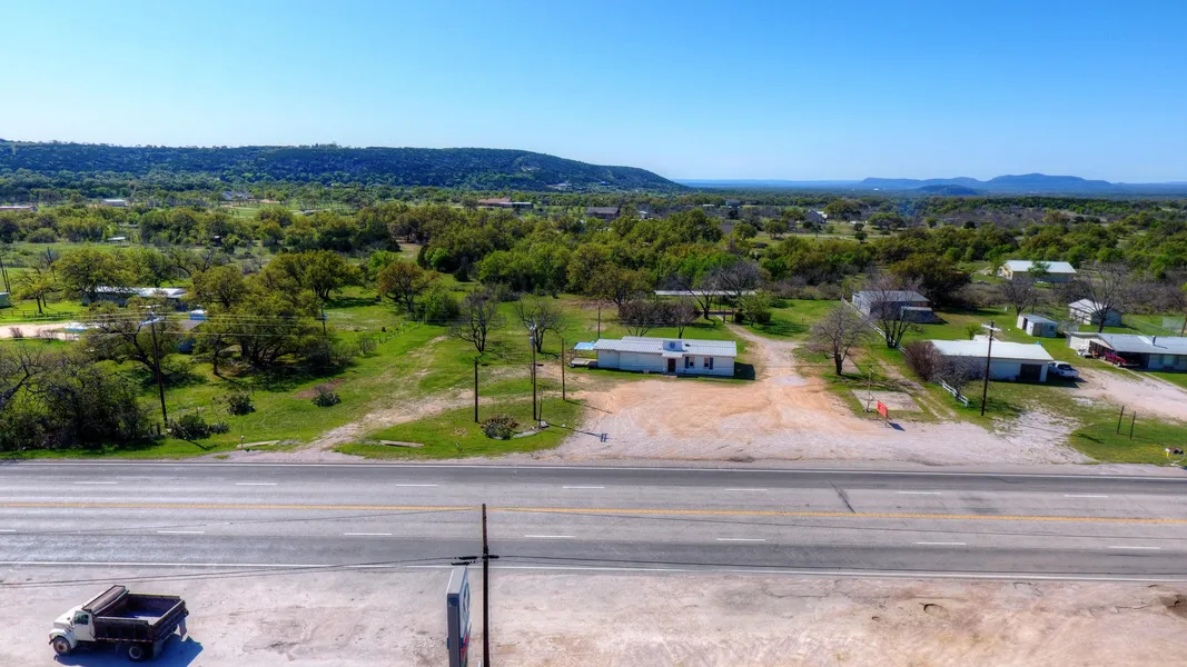 Great opportunity! 1.9 +- acres with approx. 275' of highway 29 frontage. Very near the intersection of Highways 1431 & Hwy 29. Minutes from Lake Buchanan, Inks Lake and Lake LBJ. Could be used as an RV park, boat and RV storage or just about anything else you could imagine. Existing building was last used as a bar and features a large open room, walk in cooler, bathrooms and more. Covered area out back would make a great outdoor entertainment area. This could be a great place to build a house and have your commercial venture on the highway frontage. Exciting things are coming soon across the street from this property. Lots of possibilities! Opportunity is knocking! Let's go!
